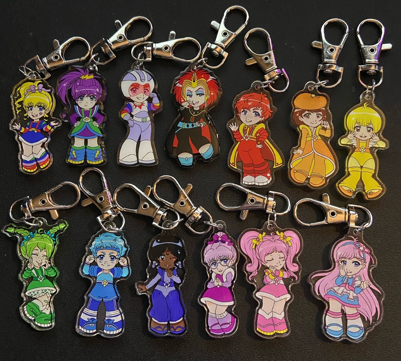 2-inch arcylic double sided keychains in 13 available designs: