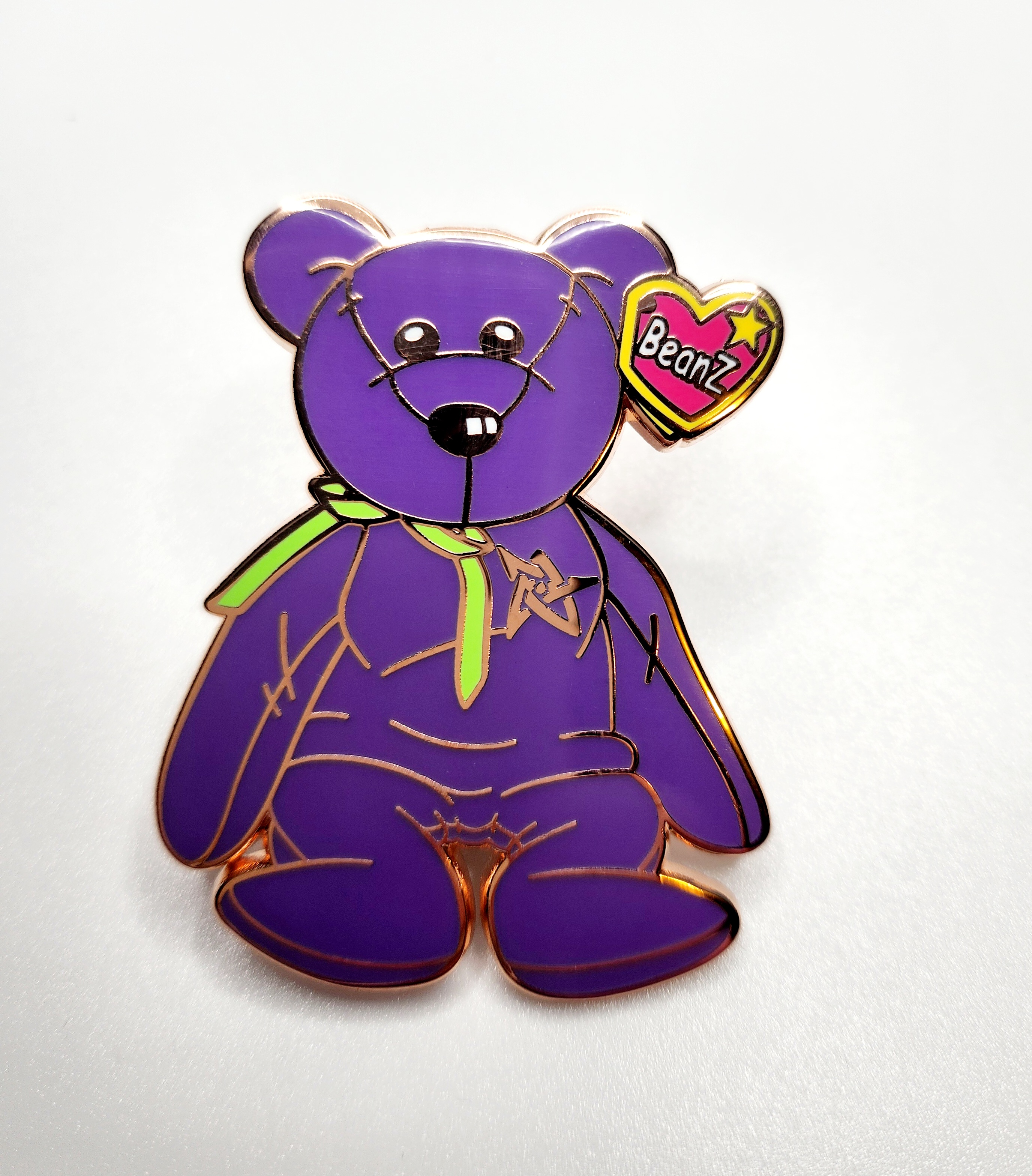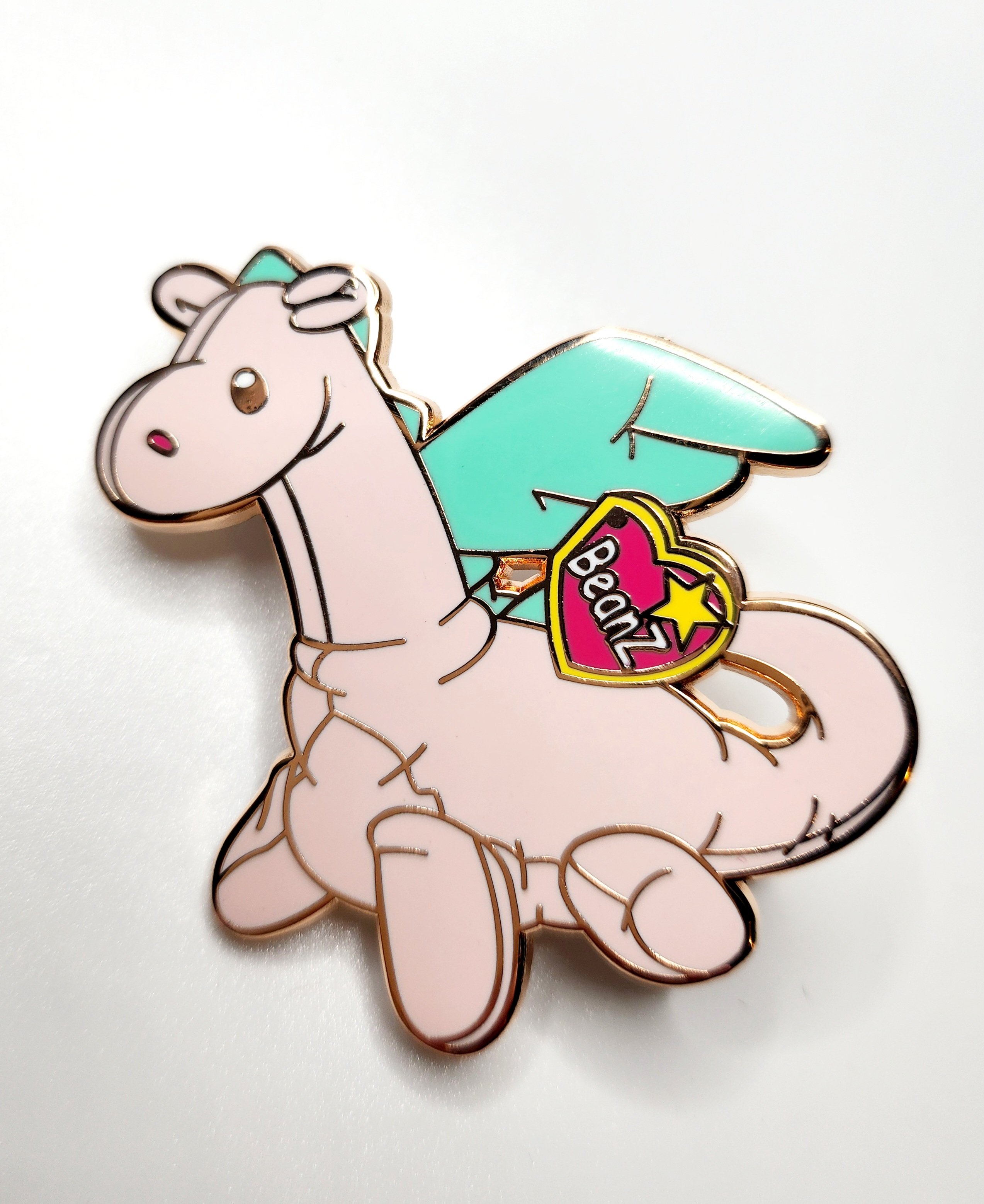 A collection of 2-inch hard enamel pins based off the popular plush toy craze of the 90s and 00s